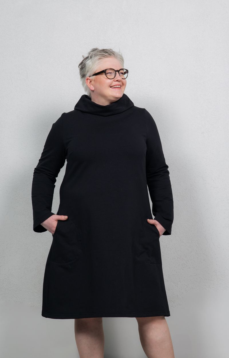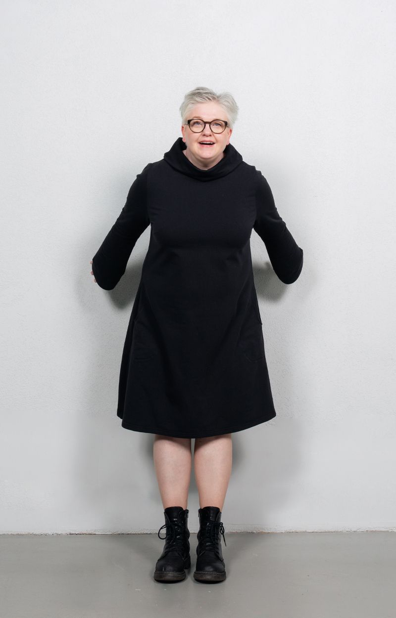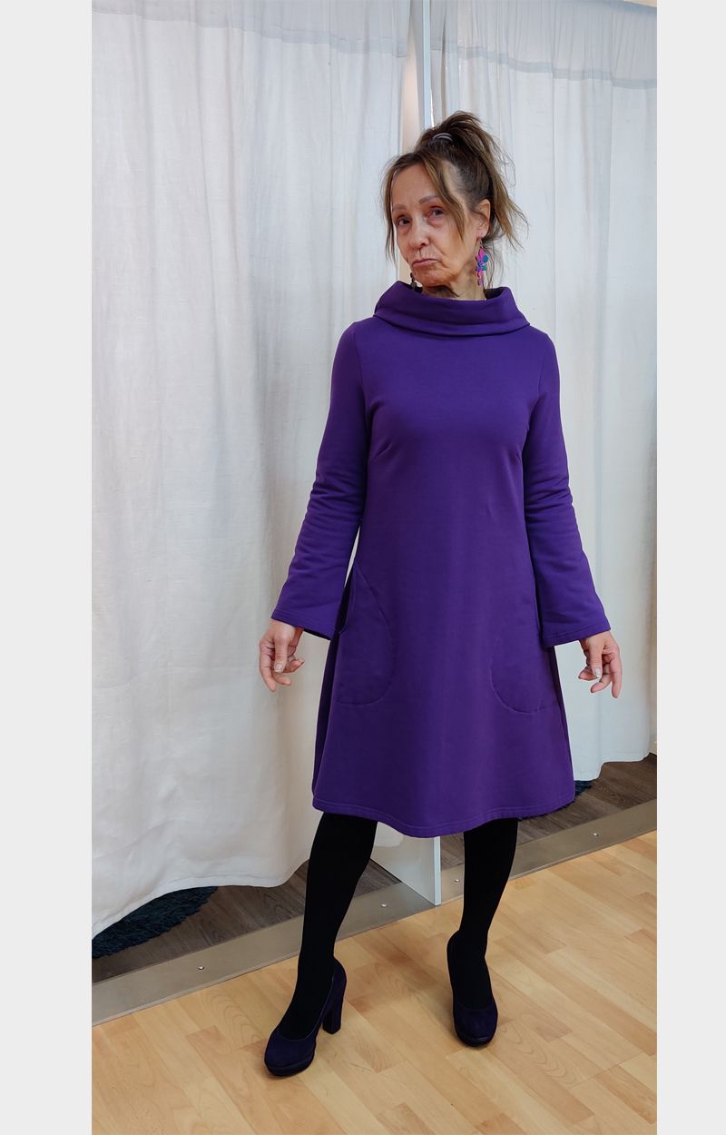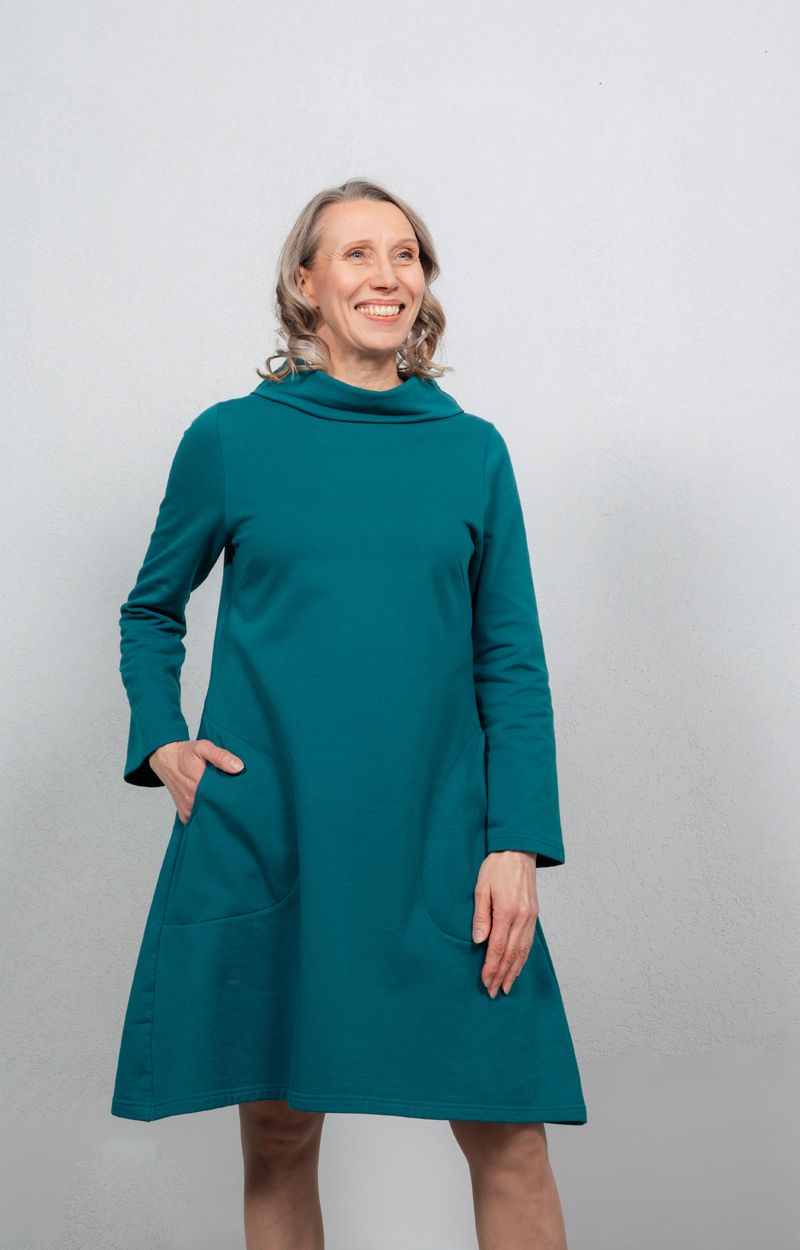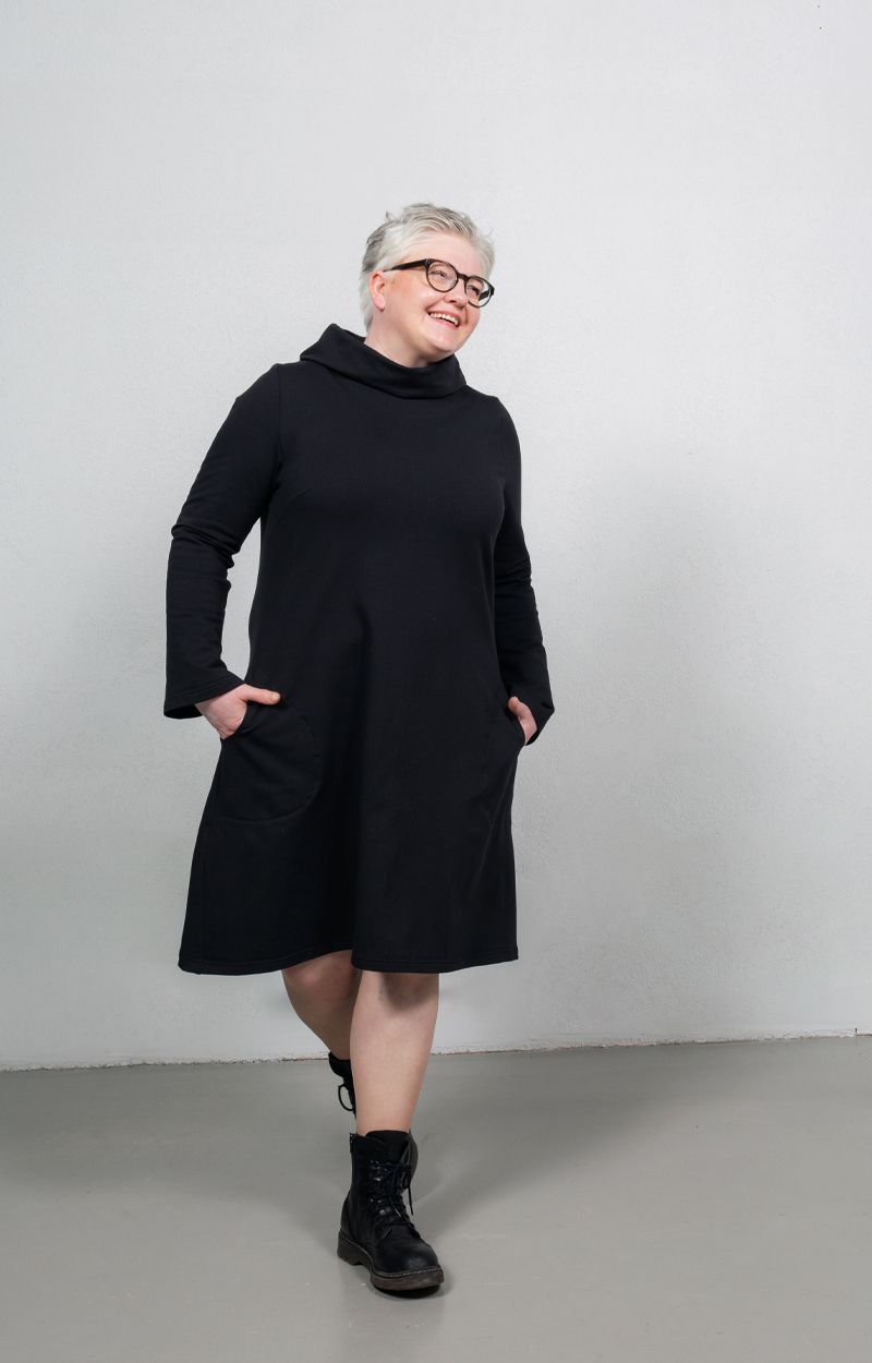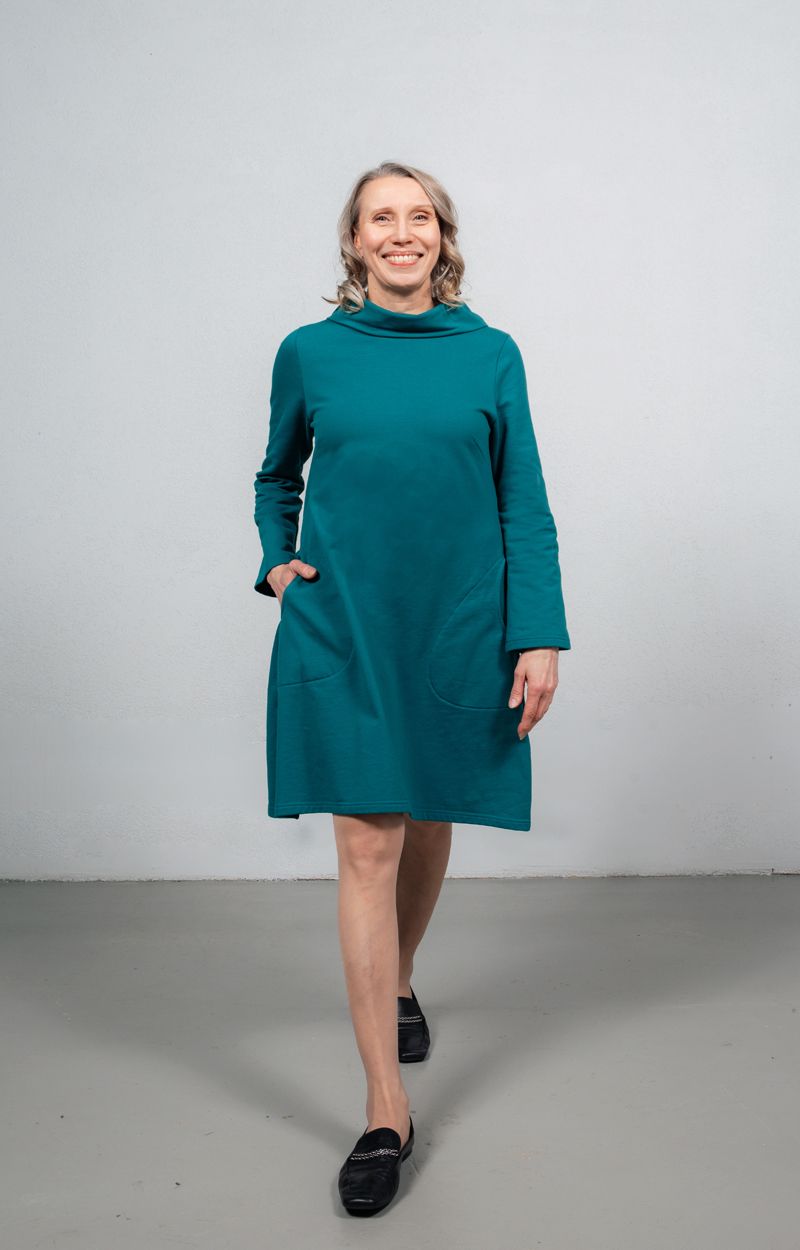 AAVA-collegemekko on kaavoitettu naisellisen A-linjaiseksi. Tyylikäs yksityiskohta on kaunis korkea kaulus. Rennot sivutaskut tekevät mekosta todella käytännöllisen arkivaatteen: pikkutavarat pysyvät mukana arjen keskellä. Mekko on mukavan pehmeää collegeneulosta.