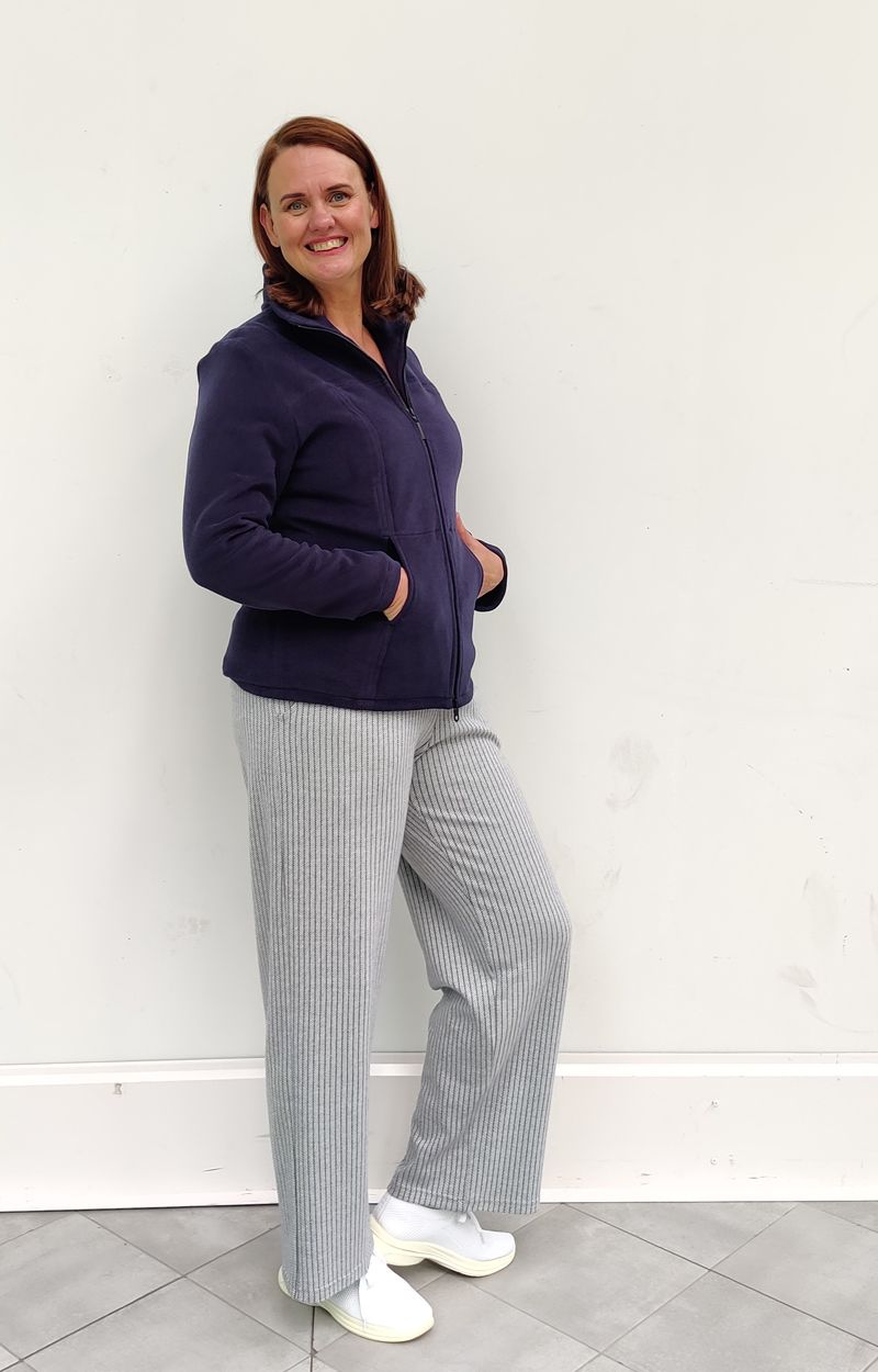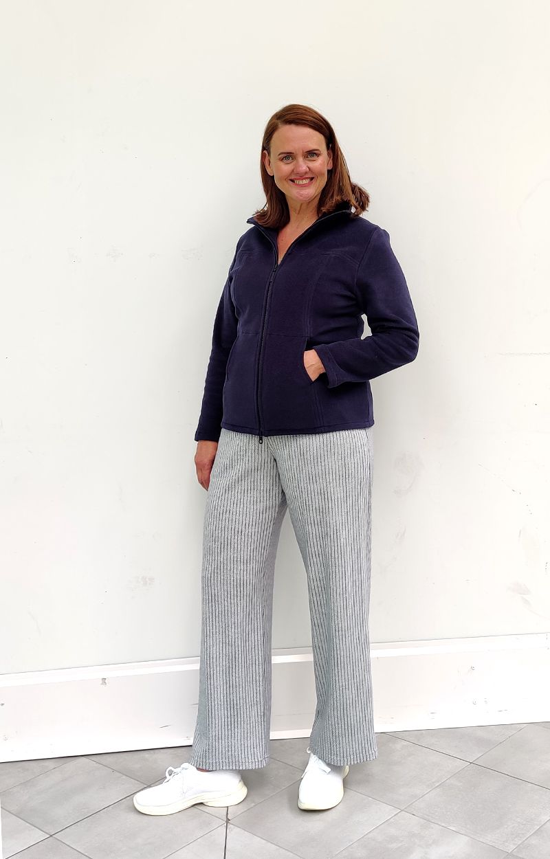 Voit yhdistää fleece takkiin monipuolisesti erilaisia alaosia kuten HELINÄ-housumme.  Myymälästämme löydät myös vaaleat raita puuvillahousut.