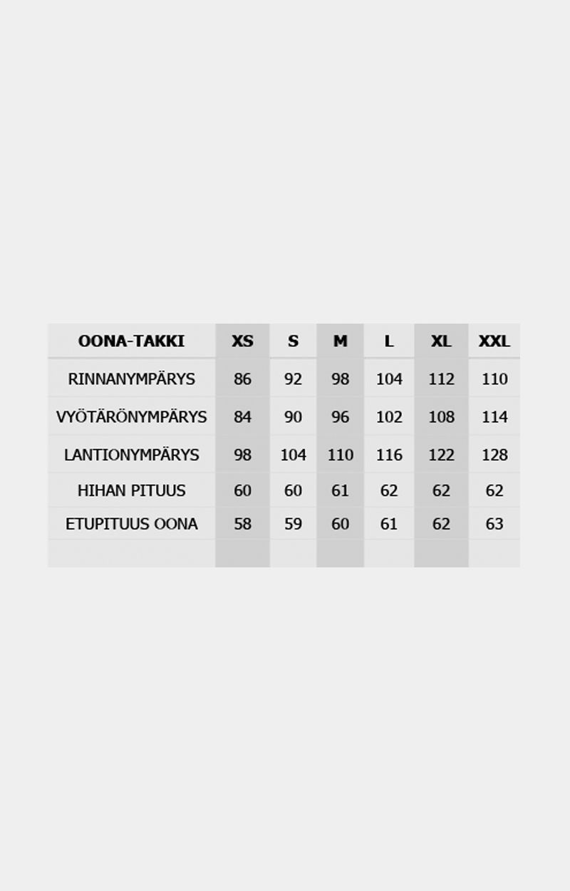 Puuvillafleece materiaali on suloisen pehmeää ja tuntuu ihanalta ihollasi. Hyvä vaihtoehto teille, joille 100% villasta valmistettu OONA-villakangastakkimme ei sovellu.