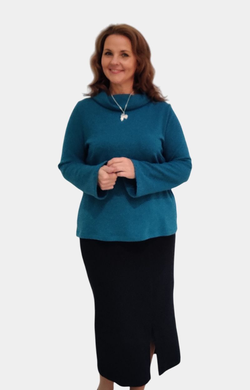 Pehmeästi laskeutuva kaulus, trumpettihihat ja A-linjainen malli, jossa rintamuotolaskokset tuovat lisää istuvuutta. Tämä neulepusero tekee asustasi ajattoman tyylikkään, valitset sitten housut tai hameen. Jos haluat lisää lämpöä niin tutustu myös SOFIA-merinovillaiseen neuletakkiin, joka sopii AAVA-puseron kanssa täydellisesti.