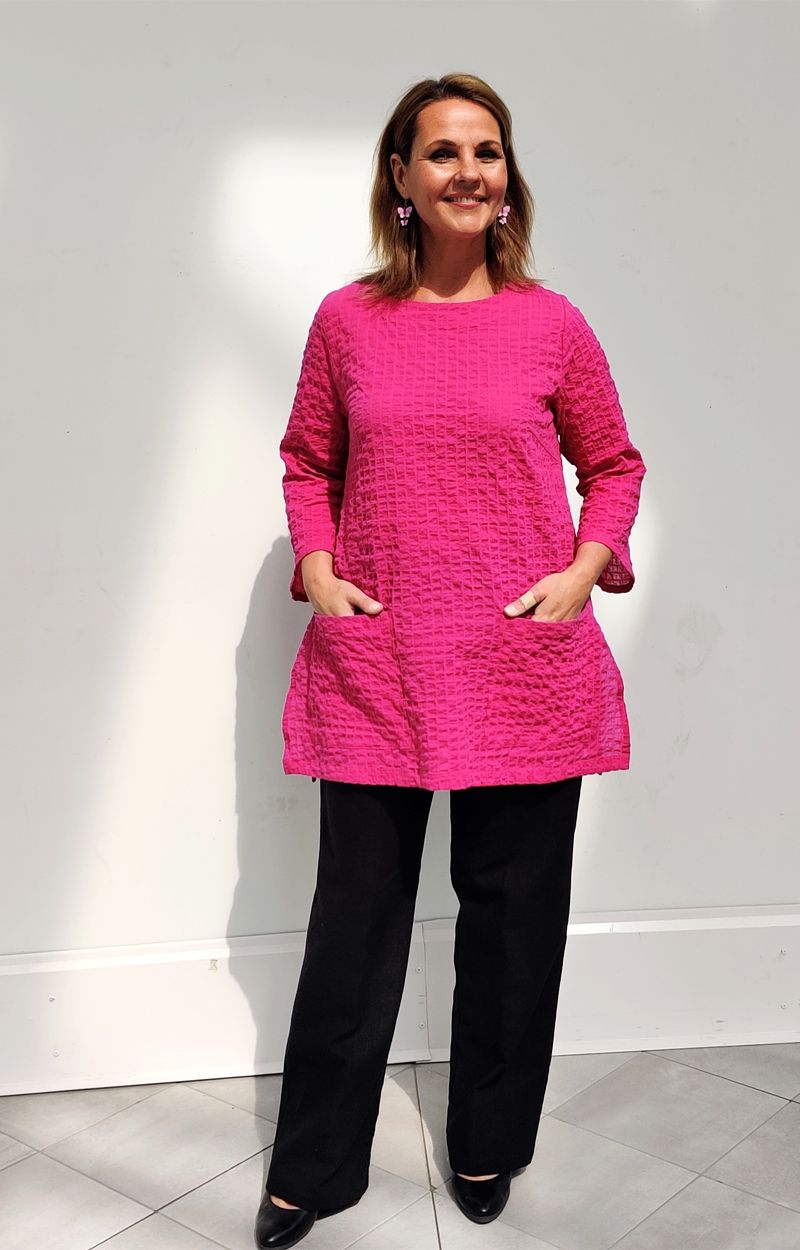 Puuvillakreppi ei rypisty ja kuivuu nopeasti. VILJA-tunikasta nyt viimeiset koot!
